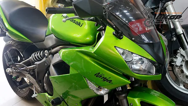 客戶剛入手的 Kawasaki ER6f 已到表定保養里程, 在確定了保養項目後即預約時間前來留車.
