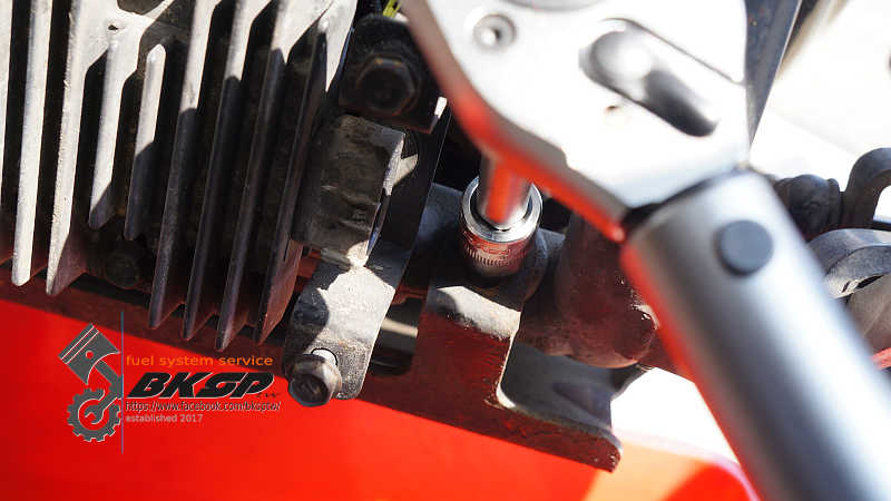 | 以指定扭力值鎖緊排氣管固定螺絲 |