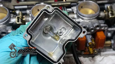 漏掉化油器油杯內的汽油時, 第 4 缸油杯漏下的汽油顏色較其他油杯漏下的深沈很多... 不過油杯拆下後並沒有發現什麼特別髒污的地方