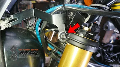這台 BMW R nineT 可能在改裝階段時, 有一段時間接頭是拆開未裝的狀態, 也因此才讓一些蟲子跑進感知器的接頭內?...